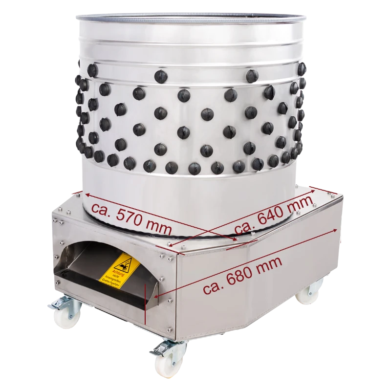 Tenez également compte des dimensions de la machine avant d’en acheter une trop petite. Les oies et les dindes de grande taille nécessitent un certain espace pour pouvoir tourner correctement dans la machine et garantir que toutes les plumes soient plumées sans dommage.