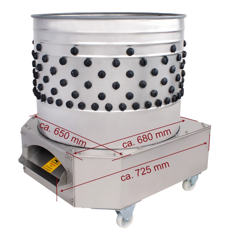 Tenez également compte des dimensions de la machine avant d’en acheter une trop petite. Les oies et les dindes de grande taille nécessitent un certain espace pour pouvoir tourner correctement dans la machine et garantir que toutes les plumes soient plumées sans dommage.